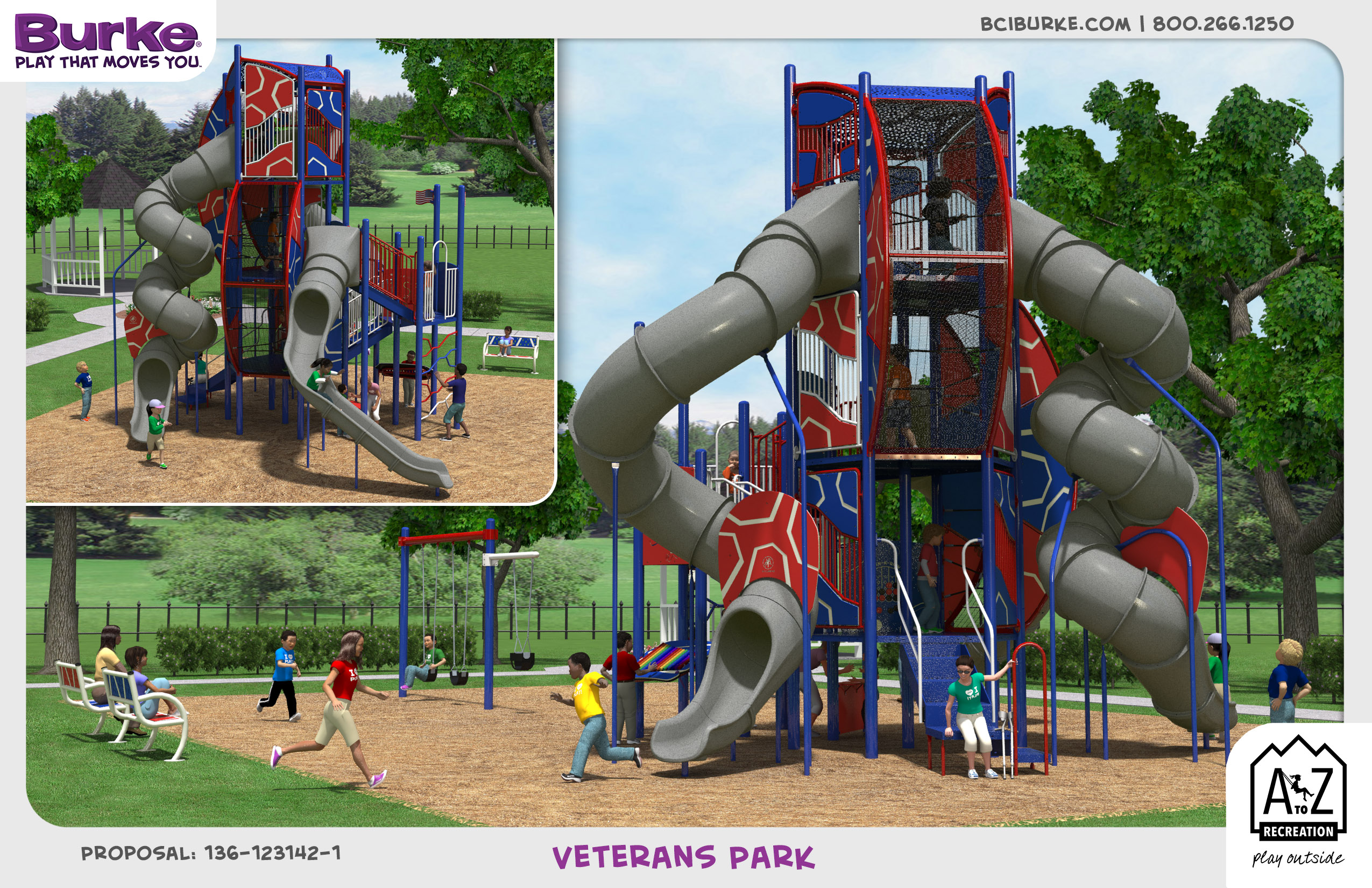 The project work, situated at Veterans Park, consists of the demolition and removal of the old playground structures and creation of an iconic slide structure and a 2-bay swing set as the main play feature within the designated playground area, and all other work associated to complete the project, where any items not specifically identified are considered inherent to the work.